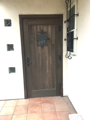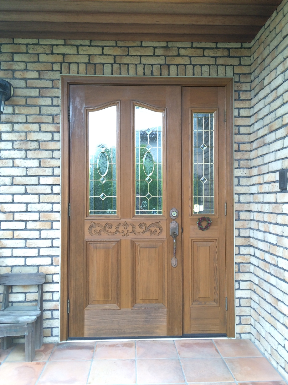 先日、外壁の塗装工事を完了したお家で 玄関の木部塗り替えをしました。 元々の木の色(クリア色)から …