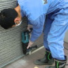 玄関タイルにも穴を空けて薬剤を注入します。